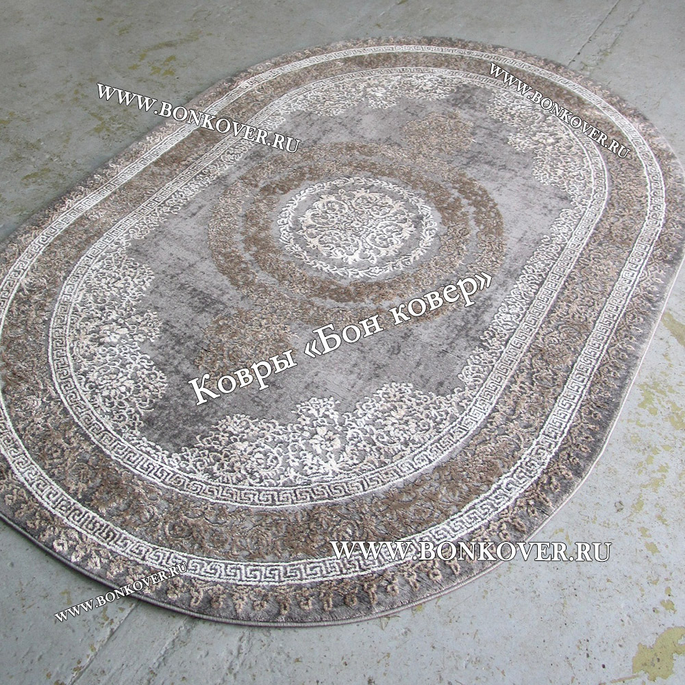 Шикарный Классический ковер дизайн 93 Коричневый с серым овал наполняет интерьер квартиры теплом и уютом, гармонично сочетает в себе изящество и стиль. Он соткан из экологически чистого сырья, комфортный и долговечный.