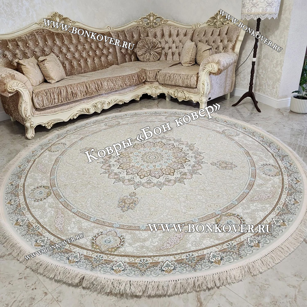 Шикарный Круглый Ковер Для Гостиной Арт 30552 наполняет интерьер гостиной теплом и уютом, гармонично сочетает в себе изящество и красоту. Он соткан из износостойких материалов, прочный и долговечный.